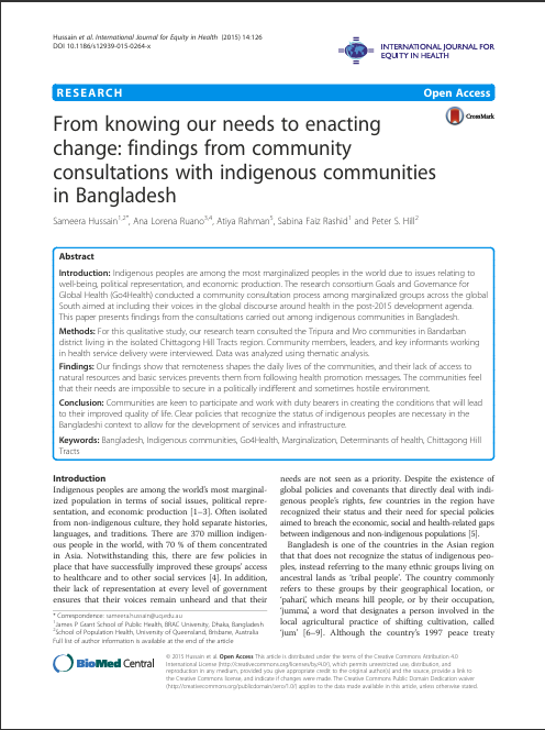Conclusiones de las consultas comunitarias con comunidades indígenas en Bangladesh. Año: 2015