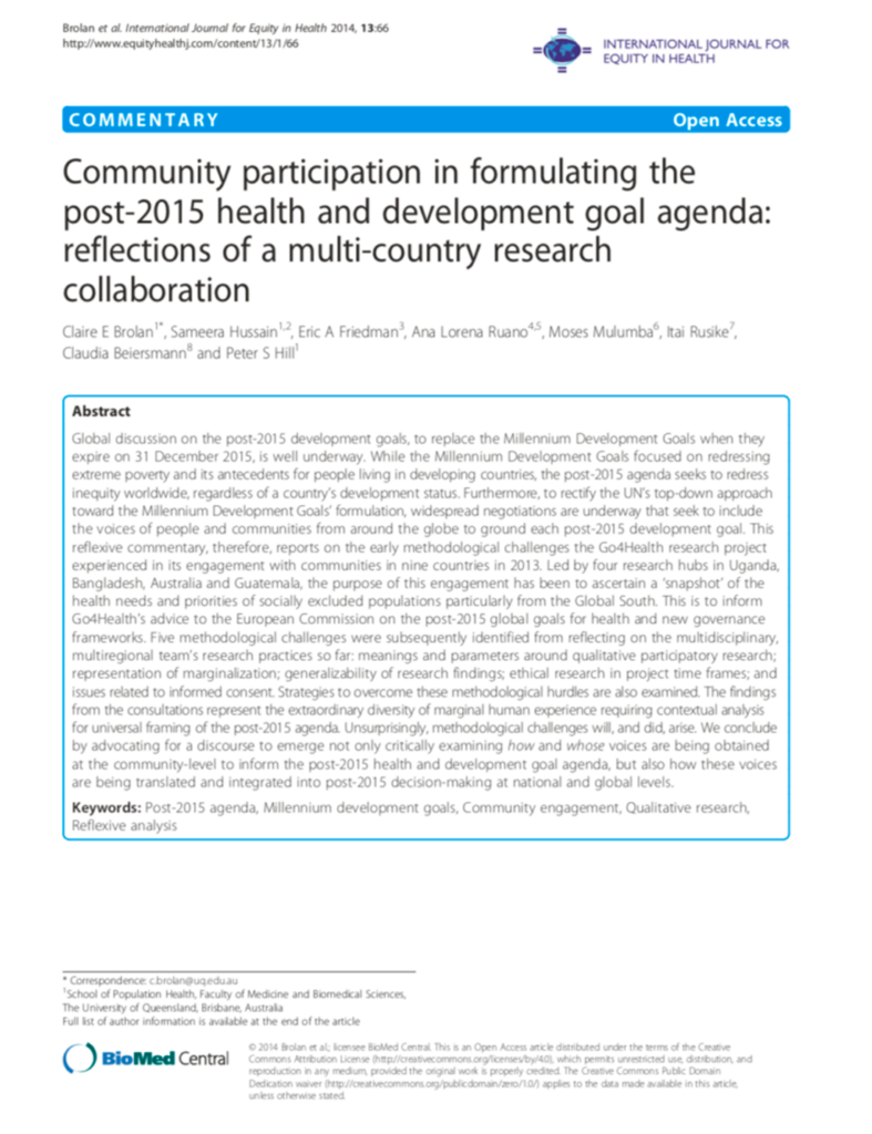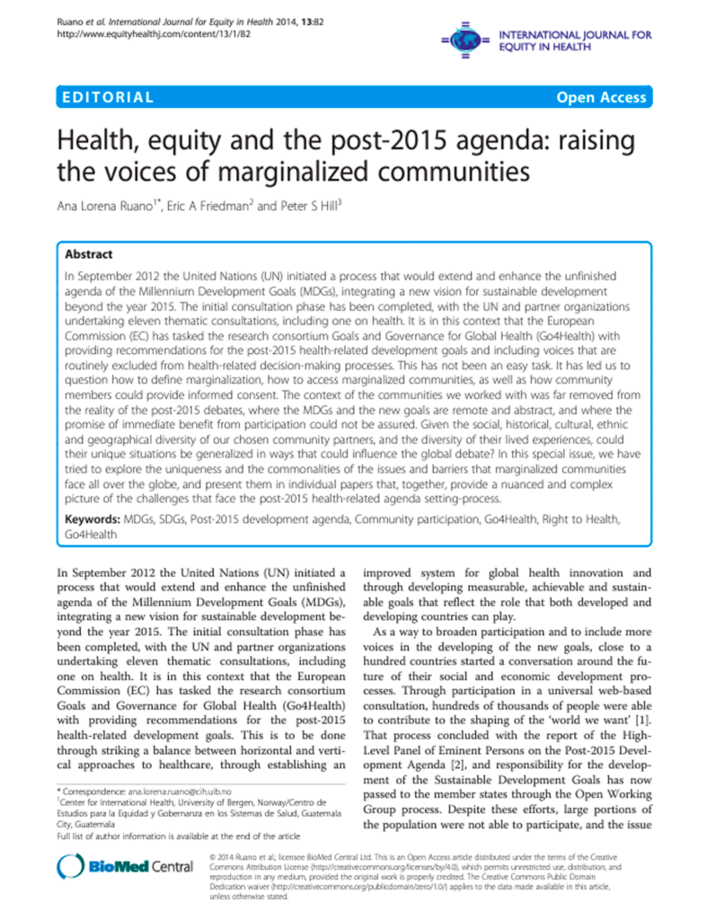 Salud, equidad y la agenda post-2015: alzar las voces de las comunidades marginadas