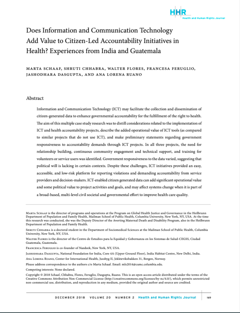 Lecciones sobre acción ciudadana y rendición de cuentas en los servicios públicos de salud