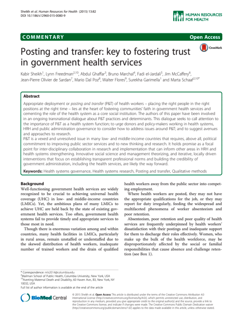 Desplazamiento y transferencia: fomentar la confianza en los servicios de salud