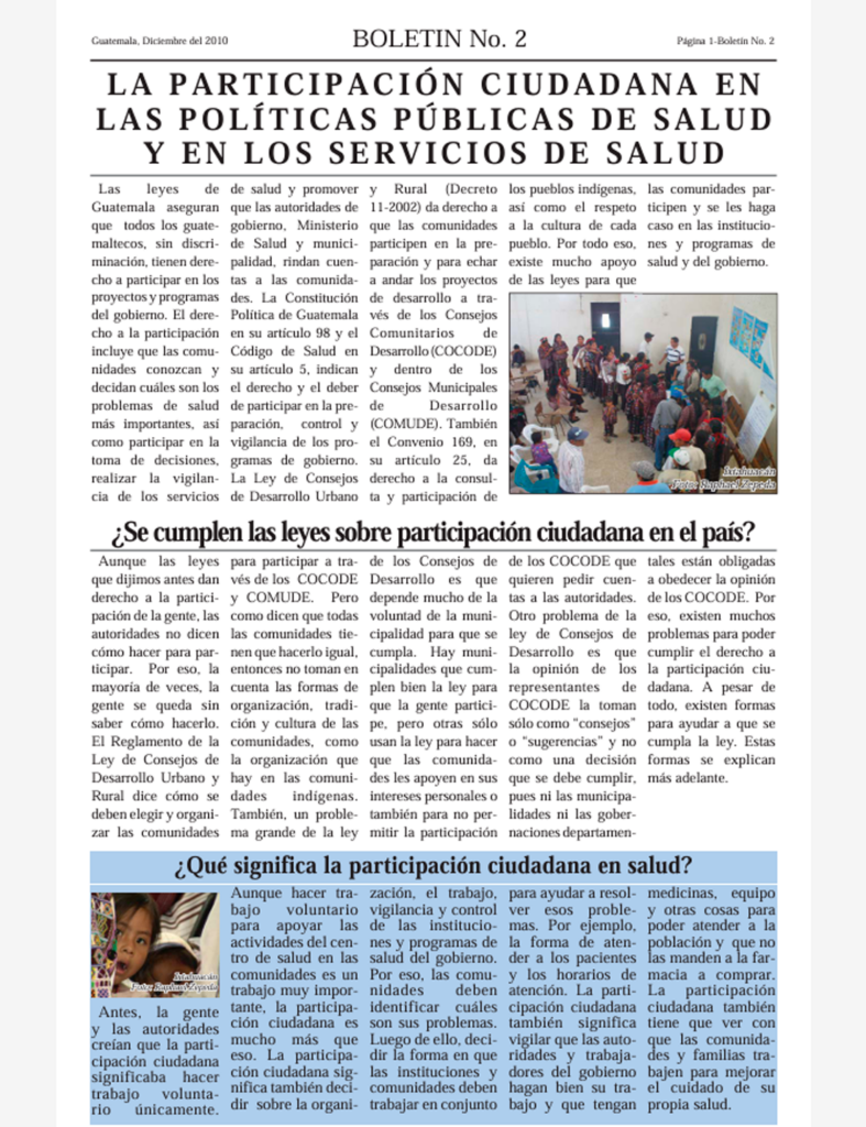 Boletín No. 2: La participación ciudadana en las políticas públicas de salud