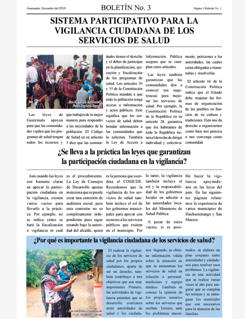 Boletín No. 3: Sistema participativo para la vigilancia ciudadana de los servicios de salud